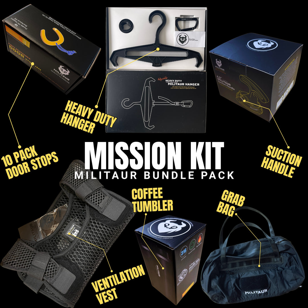 Mission Kit: Door Stops + Hanger + Suction Handle + Grab Bag + Ventilation Vest + FREE MILITAUR Coffee Tumbler