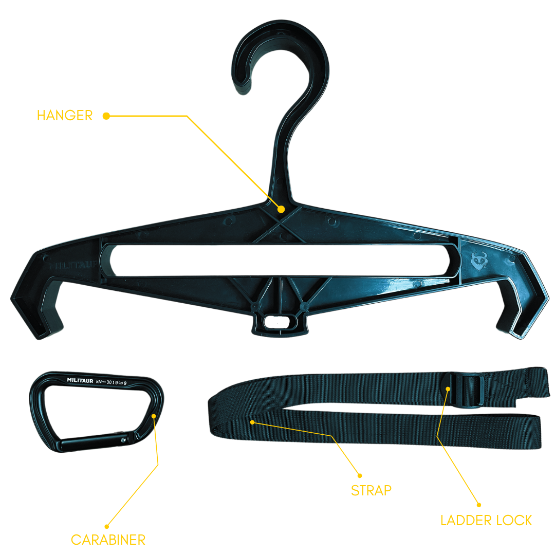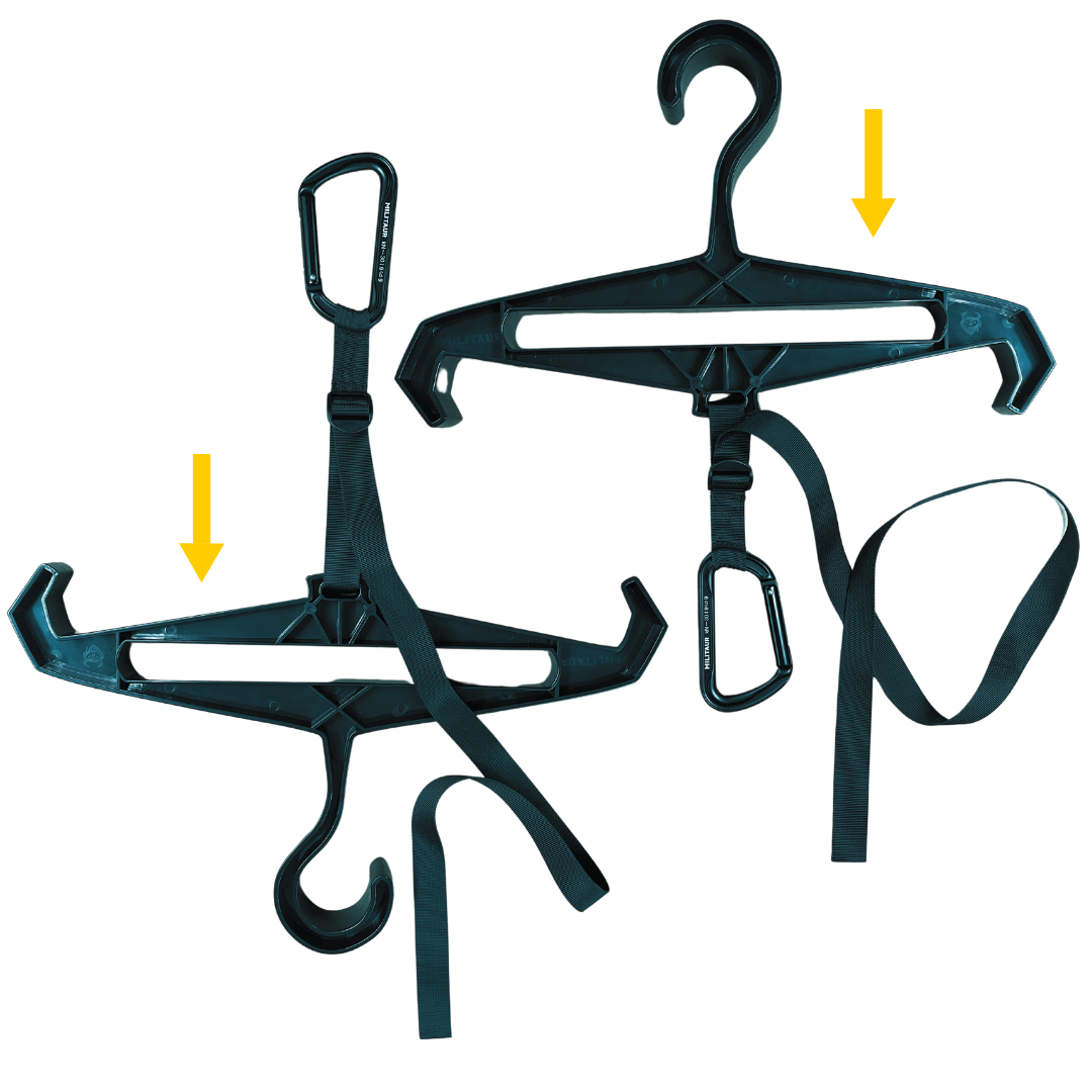 - Extra Options: When the hanger is in use, utilize the bottom side (either hook or carabiner) for additional hanging options.
