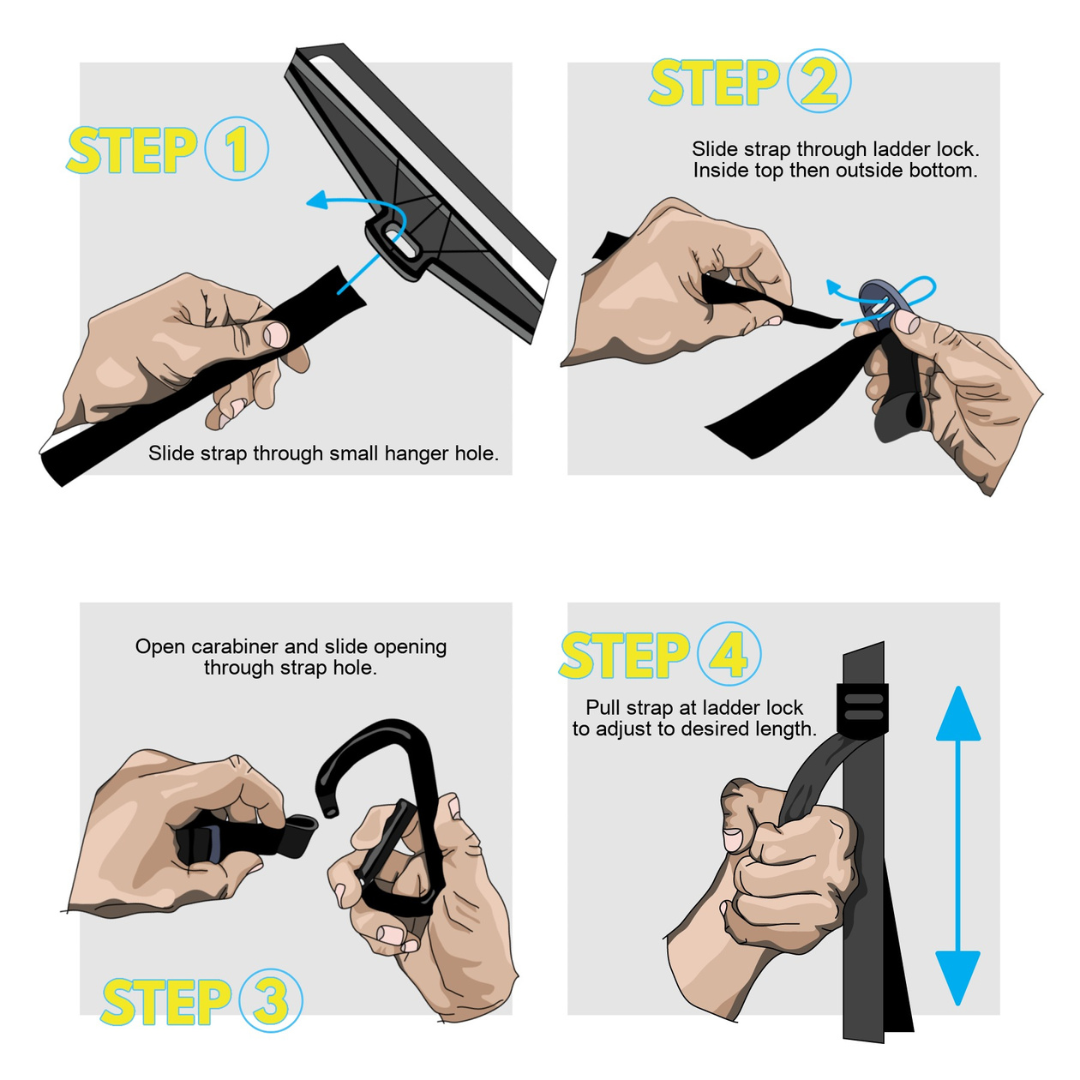 - Step 2: Slide strap through ladder lock. Inside top then outside bottom.